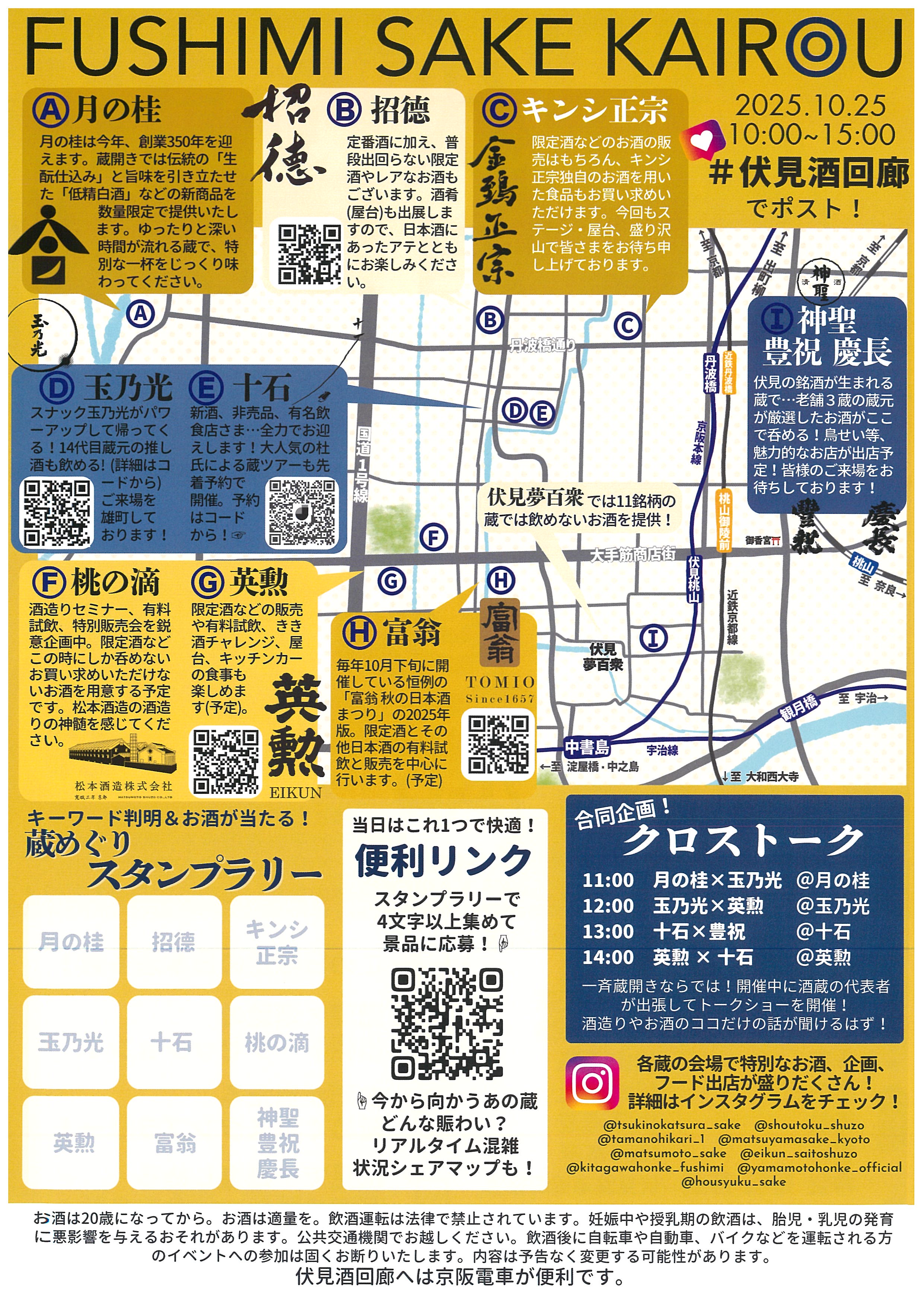 伏見散策ガイドマップ 日本語版 FUSHIMI Guide Map English Version 公式instagram 公式facebook 伏見酒造組合 YouTubeチャンネル 伏見の清酒 KYOTO FUSHIMI SAKE GUIDE 伏見醸友会 創立110周年